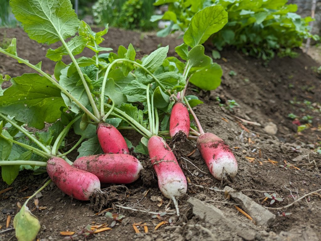でもそのときに植えた二十日大根が収穫できたり、それを自分で酢の物にしたり。